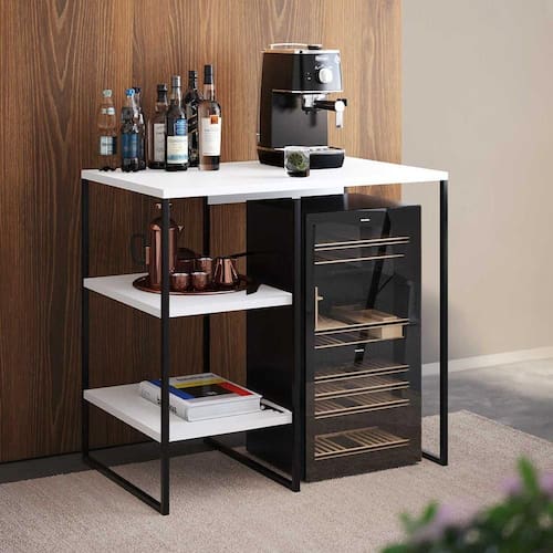 AS IMAGENS SÃO MERAMENTE ILUSTRATIVAS E PODEM SOFRER VARIAÇÕES DE COR E PEQUENOS DETALHES DE ACORDO COM O SEU MONITOR, ILUMINAÇÃO DO AMBIENTE E ATÉ MESMO A SUA PERCEPÇÃO VISUAL.Aparador Adega Industrial Bar Barzinho Bourbon AÃo Preto e Branco 80 Cm