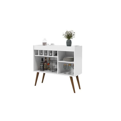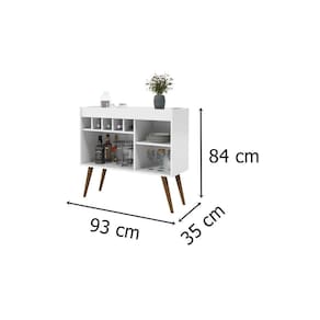 O Aparador Adega New Odin - EJ Móveis possui um Lindo design em móvel compacto e charmoso,com pés de madeira “palito retrô”, tampo superior estilo bandeja, adega com espaço para 5 garrafas com nicho para armazenamento e decoração de acordo com sua criatividade