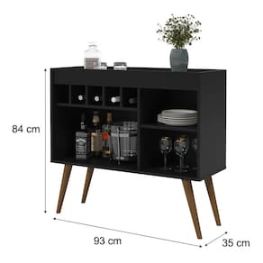 APARADOR ADEGA NEW ODIN O Aparador Adega New Odin possui um Lindo design. Um móvel compacto e charmoso.Com pés de madeira “palito retrô”, tampo superior estilo bandeja, adega com espaço para 5 garrafas e nicho para armazenamento. Decore de acordo com sua criatividade. DIMENSÕES DO PRODUTO MONTADO: Altura: 840mm Largura: 930mm Profundidade: 350mm