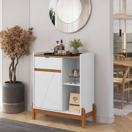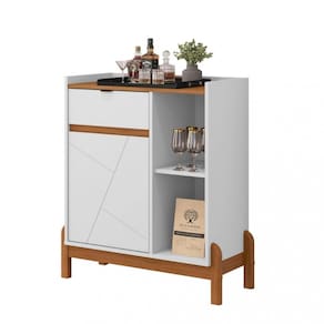Aparador Bar 1 Porta 1 Gavetas com Pés de Madeira Bari Casa D, é a escolha ideal para quem é amante de um cafezinho. Funcional e compacto, possui um tampo com amplo espaço, além de gaveta e uma porta que podem organizar diversos utensílios diferentes, como xícaras, canecas, açucareiro, máquina de expresso e o que mais você precisar. Elaborado em MDF/MDP ele conta com pés de madeira maciça com feltro protetor, garantindo mais qualidade e resistência ao produto. Conta com um puxador de aço pintado. Com tantas qualidades o Aparador Café Bari é perfeito para sua sala ou escritório!