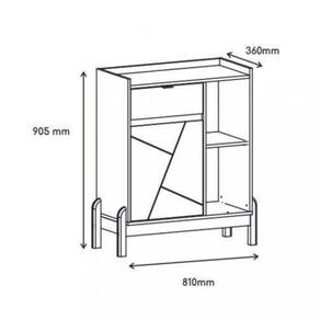 Características: Tampo e laterais em MDP de 15mm e 25mm Porta em MDF de 15mm 1 Gaveta Corrediças telescópicas Puxador de metal Porta de MDF usinada Dobradiças com sistema Soft Close Pés de Madeira Maciça