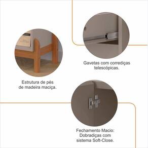 Material da estrutura: tampo e laterais em MDP de 15mm, porta em MDF de 15mm com pés de madeira maciça;