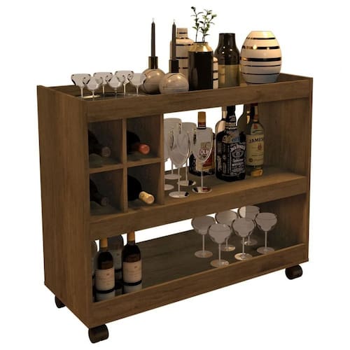 Aparador Bar Com Rodizios Madeirado Em Mdf