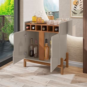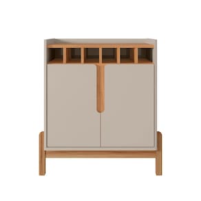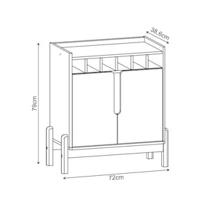 Perfeito para compor ambientes modernos, o Barzinho Lizz conta com adega para 6 garrafas, portas de MDF usinadas com acabamento sofisticado e sistema de abertura com dobradiças soft-close, que garante fechamento suave e sem impacto. Seus pés em madeira maciça oferecem estabilidade, resistência e um toque de charme natural. Tipo: Bar Modelo: Lizz Cor: Off White/Cedro DIMENSÕES DO PRODUTO: Altura: 79cm Largura: 72cm Comprimento: 38,6cm ATENÇÃO AS IMAGENS SÃO MERAMENTE ILUSTRATIVAS E PODEM SOFRER VARIAÇÕES DE COR E PEQUENOS DETALHES DE ACORDO COM O SEU MONITOR, ILUMINAÇÃO DO AMBIENTE E ATÉ MESMO A SUA PERCEPÇÃO VISUAL.
