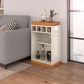 Sempre buscando trazer o que há de moderno e sofisticado para nossos clientes. A ViaNossa desenvolveu o aparador bar Astúrias, um móvel versátil e compacto.Desenvolvido para ser utilizado em diversos ambientes da sua casa, ele é fabricado em MDP de 15mm, adega para 4 garrafas, bandeja em MDF que poderá acomodar taças, jarras e itens decorativos, possui nichos e prateleira garantindo espaço para organização e praticidade. Completando seu ambiente com inovações e versatilidade. Especificação Técnica:- Material: MDP;- Acabamento: Pintura Uv;- Número de Nichos: 6 Nichos;- Número de gavetas: Não possui;- Número de Prateleiras; 1 Prateleira;- Produto Precisa de Montagem? Sim;- Instruções de Cuidado: Limpar com pano levemente umedecido;- Medidas do Produto (LarguraXProfundidadeXAltura): 48x33x85 cm;- Conteúdo da Embalagem: ( 1 Aparador Bar - Entregue 1 Volume);Observações Importantes:- Produto não deve ficar exposto diretamente ao sol, calor e umidades excessivas.- Recomendações de Limpeza: Utilize somente pano seco ou levemente umedecido.- O produto pode sofrer alterações de tonalidade conforme o seu monitor.- Imagens meramente ilustrativas, produto não acompanha objetos de decoração e eletrônicos.- Ao receber, verifique a embalagem. Se detectar irregularidades, recuse o recebimento e nos contate.- Não nos responsabilizamos, no ato da entrega, por subir escadas/elevadores.- Nós não nos responsabilizamos pela montagem e por problemas causados pela montagem realizada por você ou montador contratado. Enfatizamos a recomendação aos nossos clientes de contratar um montador profissional.- Eventualmente, se faltar qualquer peça ou acessório no produto, nos contate e enviaremos a peça/acessório sem custo adicional.