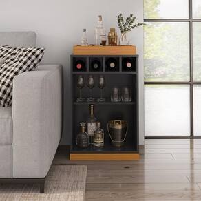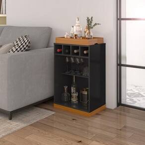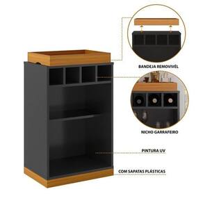 Aparador Bar Retrô Bandeja De Mdf Adega 4 Garrafas Astúrias Cor: PRETO CEDRO Medida do Móvel Montado:- Altura: 85 cm- Largura: 48 cm- Profundidade: 33 cm Características:Tipo: Aparador Bar- Material: MDP 15mm;- Acabamento: Alto brilho com pintura UV;- Bandeja Removível;- Nicho 4 Garrafas;- Sapatas Plásticas Especificação Técnica: - Material: MDP; - Acabamento: Pintura Uv; - Número de Nichos: 6 Nichos; - Número de gavetas: Não possui; - Número de Prateleiras; 1 Prateleira; - Produto Precisa de Montagem Sim; - Garantia: 3 Meses; - Instruções de Cuidado: Limpar com pano levemente umedecido; - Medidas do Produton LarguraXProfundidadeXAltura : 48x33x85 cm; - Conteúdo da Embalagem: 1 Aparador Bar - Entregue 1 Volume ; Observações Importantes: - Produto não deve ficar exposto diretamente ao sol, calor e umidades excessivas. - Recomendações de Limpeza: Utilize somente pano seco ou levemente umedecido. - O produto pode sofrer alterações de tonalidade conforme o seu monitor. - Imagens meramente ilustrativas, produto não acompanha objetos de decoração e eletrônicos. - Ao receber, verifique a embalagem. Se detectar irregularidades, recuse o recebimento e nos contate. - Nós não nos responsabilizamos pela montagem e por problemas causados pela montagem realizada por você ou montador contratado. Enfatizamos a recomendação aos nossos clientes de contratar um montador profissional. - Eventualmente, se faltar qualquer peça ou acessório no produto, nos contate e enviaremos a peça/acessório sem custo adicional. Marca: Via Nossa