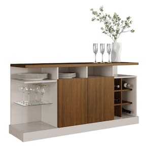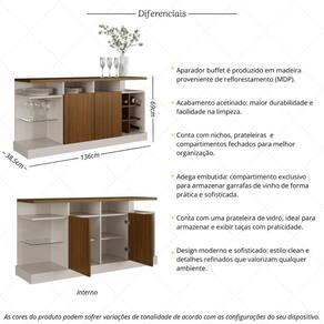 Possui 2 portas com prateleiras internas, adega embutida para acomodar suas garrafas de vinho preferidas com requinte, além de prateleira de vidro elegante, ideal para suas taças. Não para por aí os nichos proporcionam aquele toque especial, perfeito para itens decorativos que refletem sua personalidade.