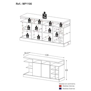 O produto será entregue desmontado e não disponibilizamos o serviço de montagem. Acabamento: Pintura UV | Material: MDP | Referência do Modelo: MP1100 | Coleção: Aparador | Instruções de Cuidado: Limpar com pano seco para retirar o pó. Não utilizar produtos químicos ou abrasivos a limpeza. Não aplicar lustra móveis. | Sistema de Montagem: O produto acompanha manual de montagem juntamente com parafusos, pregos, cavilhas, entre outros. O produto será entregue desmontado e a Multimóveis não disponibiliza o serviço de montagem. | Produto Composto por: 1 aparador, manual de montagem e kit ferragem. | Altura Montado: 69 | Largura Montado: 136 | Profundidade Montado: | Tamanho (L x A x P): 136 x 69 x 38,5 | Gavetas: 0 | Portas: 2 | Prateleiras: 3 | Pés: 0 | Produto: Aparador | Peso do Produto: 49 | do Fabricante: 3 | Tonalidade: Branco | Requer Montagem: Sim | Altura (cm): 69 cm | Largura (cm): 136 cm | Fabricante: Multimóveis | Profundidade (cm): 38,5 cm | Altura do Produto com Embalagem: 28 | Largura do Produto com Embalagem: 43 | Comprimento do Produto com Embalagem: 141 | Peso do Produto com Embalagem: 49 | Nome do Produto no Fornecedor: Aparador Buffet 136cm com Adega Embutida Multimóveis MP1100 Off White/Madeirado | Destaque 1: Produzido em MDP: maior durabilidade e resistência. | Destaque 2: Conta com nichos, prateleiras e compartimentos fechados para melhor organização. | Destaque 3: Adega embutida: compartimento exclusivo para armazenar garrafas de vinho de forma prática e sofisticada. | Destaque 4: Possui uma prateleira de vidro, ideal para armazenar e exibir taças com praticidade. | Destaque 5: Tamanho do produto montado (L x A x P): 136 x 69 x 38,5 cm | Descrição do Tamanho: (L x A x P): 136 x 69 x 38,5 cm | Tempo de : 3 meses | Estado de Origem: RS | Produto precisa de Montagem?: Sim, sugerimos a contratação do nosso serviço de montagem (para os CEPs em que o serviço está disponível) ou de algum experiente de sua preferência | Marca: Multimóveis | Origem: BR (Origem) | Quantidade de caixas de embalagem: 03 | Duração da : 3 Meses | Tipo de : do Fabricante | Montagem: Necessita Montagem | Peso máximo suportado: 49 kg | Estilo: Moderno | Com Alça: Não | Com Corrediças: Não | Baterias são necessárias?: Não | Certificação de teste externa: N/A | Is Fragile: Não | Dimensões do item P x L x A: ;depth#unit=centimeters;width#value=136;width#unit=centimeters;height#value=69;height#unit=centimeters | Peso do item: unit=kilograms;value=49 | Quantidade de itens: 1 | da peça: | Peso (kg): 49 kg | Preço sugerido sem impostos: 999,9 Cor: Off White/Madeirado