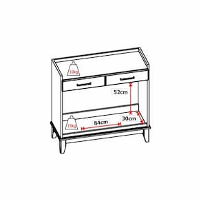 As duas gavetas com trilhos telescópicos garantem abertura suave e total, facilitando o acesso aos objetos do dia a dia. Conta ainda com puxadores metálicos e pés maciços, proporcionando mais estabilidade e um visual contemporâneo.