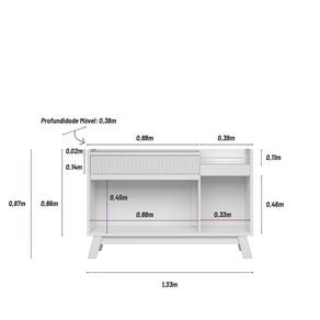 Dimensões: Altura: 87 cm Largura: 133 cm Profundidade: 38 cm Peso: 40,8 Kg