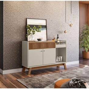 Aparador Buffet 2 Portas 133 Cm Lucca Amendoa/off White DescriçãoO Buffet Lucca vai encantar o seu ambiente! Com design moderno, possui uma gaveta com detalhe ripado e corrediça telescópica e aindaduas portas de abrir para você guardar objetos que não precisam ficar à mostra. Possui um porta bebidas com haste metálica e espelho.Conta também com pés em estilo retrô, trazendo ainda mais elegância ao seu ambiente!Características:Material: Composto MDP/MDFFlex Color: NãoTampo: Tampo de 25mm em MDPPortas: 2 portas de abrir em MDPGavetas: 1 gaveta em MDP que suporta até 3 kgNichos : 1 nicho para objetos decorativosPés: 4 pés em MDF com altura de 180mmRodízios: Não háPuxadores: 2 puxadores de plástico pontualVidro : Não háEspelho : 1 espelho com 3mm de espessuraLuminárias: Não háCorrediças : 2 corrediças telescópicaDobradiças: 4 dobradiças metálicaDimensões do produto montado :Altura: 87 cmLargura: 133 cmProfundidade: 38 cmPeso do produto montado : 40,80Kg