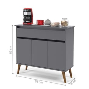 Fabricado em MDP/MDF 15 mm; 1 gaveta com corrediça metalica; 3 Porta com dobradiça metalica; Pés em madeira palito retrô.