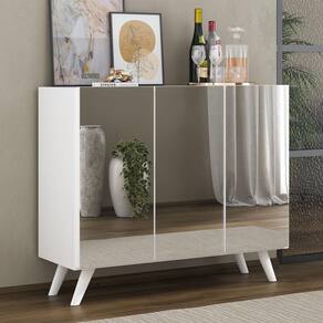 O Aparador Buffet 3 Portas com Espelho Retrô Vegas Multimóveis é produzido em MDP, que garante maior durabilidade, facilidade na limpeza, além de um acabamento superior. Com 3 portas, possui acabamento acetinado (cerca de 20% de brilho) e um excelente espaço interno para organizar seus pertences (as prateleiras internas suportam 2 e 5 Kg cada e o tampo 7 Kg). Os pés retrô, em polipropileno, e os detalhes com espelhos nas portas dão um charme especial ao móvel deixando-o com um visual leve e permitindo você compor um ambiente com ar vintage e moderno ao mesmo tempo. Os espelhos são de vidro (o que evita que a imagem fique distorcida) e lapidados, ou seja, passam por um processo para que as bordas não fiquem cortantes, o que garante maior segurança. Seu design minimalista, torna o móvel muito versátil, podendo ser utilizado de diversas maneiras e em qualquer ambiente.