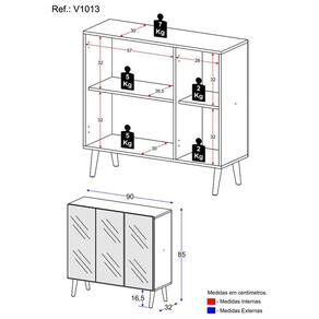 Altura: 85cm | Largura: 90cm | Profundidade: 32cm