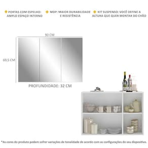 Altura: 69,5cm | Largura: 90cm | Profundidade: 32cm