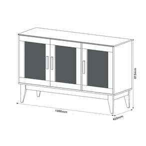 Características: Estrutura: MDP/MDF Revestido com tela em Ratha sintético 3 portas 3 puxadores em madeira maciça 2 prateleiras internas Dobradiças metálicas 4 pés em madeira maciça Peso suportado: 5 á 60kg