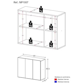 Altura: 69,5cm | Largura: 90cm | Profundidade: 32cm