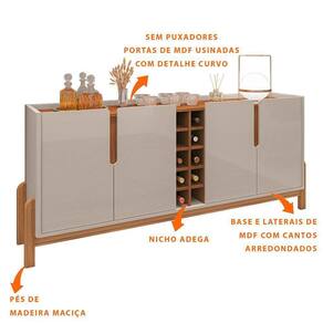 O aparador Belle na cor Off White e Cedro, traz um charme a parte na decoração, pode ser na varanda, quarto e se for colocado próximo a porta de entrada, irá trazer boas-vindas aos moradores e convidados do imóvel. Feito com materiais de altíssima qualidade, tudo fabricado em mdp/mdf, base e laterais com cantos arredondados, 4 portas com detalhe curvo, (sem puxadores) convencionais de sistema soft-close e prateleiras internas para melhor auxiliar na organização e os os pés são em madeira maciça muito resistentes. O segredo é escolher o aparador certo para deixar o ambiente incrível e cheio de personalidade. Corra e garanta o seu!