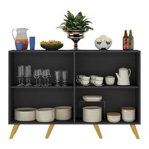 Aparador Buffet 4 Portas Retrô Alemanha Multimóveis Br3556 Preto/natural