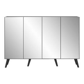 O Aparador Buffet 4 portas com Espelho e Pés Retrô Vegas Multimóveis é produzido em MDP, que garante maior durabilidade, facilidade na limpeza, além de um acabamento superior. Com 4 portas, possui acabamento acetinado (cerca de 20% de brilho) e um excelente espaço interno para organizar seus pertences (as prateleiras internas suportam 5 Kg cada e o tampo 10 Kg). Os pés retrô, em polipropileno, e os detalhes com espelhos nas portas dão um charme especial ao móvel deixando-o com um visual leve e permitindo você compor um ambiente com ar vintage e moderno ao mesmo tempo. Os espelhos são de vidro (o que evita que a imagem fique distorcida) e lapidados, ou seja, passam por um processo para que as bordas não fiquem cortantes, o que garante maior segurança. Seu design minimalista, torna o móvel muito versátil, podendo ser utilizado de diversas maneiras e em qualquer ambiente.