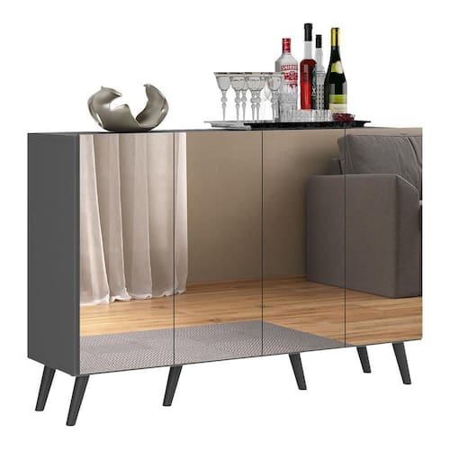 Aparador Buffet 4 portas com Espelho Retrô Vegas Multimóveis V3559 - Grafite