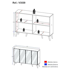 Altura: 85cm | Largura: 123cm | Profundidade: 32cm