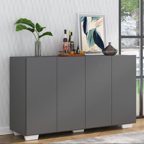 Aparador Buffet 4 Portas com Pés Quadrados Veneza Multimóveis Grafite/Branco - Cinza