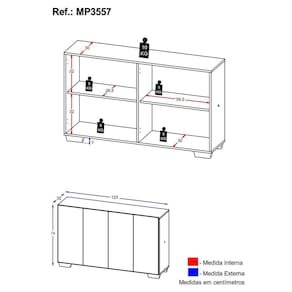O Aparador Buffet 4 portas com Pés Quadrados Veneza Multimóveis é produzido em MDP com acabamento acetinado (cerca de 20% de brilho), que garante maior durabilidade, além de um acabamento superior. Com 4 portas, possui um excelente espaço interno para organizar seus pertences (as prateleiras internas suportam 5 Kg cada e o tampo 10 Kg). Os pés quadrados, em polipropileno, facilitam na hora da limpeza. Seu design minimalista, torna o móvel muito versátil, podendo ser utilizado de diversas maneiras e em qualquer ambiente.