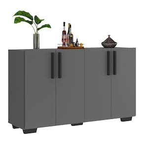 Aparador Buffet 4 Portas com Pés Quadrados Viena Multimóveis Grafite/Preto - Cinza