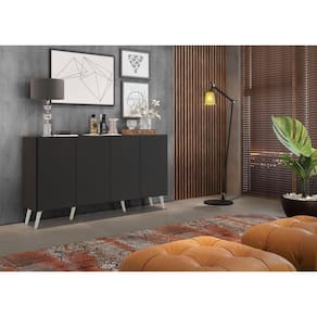 O Aparador Buffet 4 portas com Pés Retrô Veneza Multimóveis é produzido em MDP com acabamento acetinado (cerca de 20% de brilho), que garante maior durabilidade, facilidade na limpeza, além de um acabamento superior. Com 4 portas, possui um excelente espaço interno para organizar seus pertences (as prateleiras internas suportam 5 Kg cada e o tampo 10 Kg). Os pés retrô, em polipropileno, dão um charme especial ao móvel deixando-o com um visual leve e permitindo você compor um ambiente com ar vintage e moderno ao mesmo tempo. Seu design minimalista, torna o móvel muito versátil, podendo ser utilizado de diversas maneiras e em qualquer ambiente.