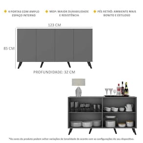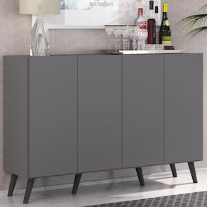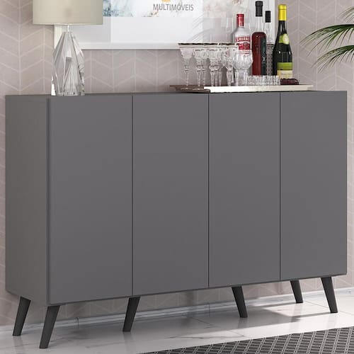 Aparador Buffet 4 Portas com Pés Retrô Veneza Multimóveis Grafite/Preto - Cinza