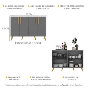 Dimensões do produto montado: Altura: 85cm | Largura: 123cm | Profundidade: 32cm *Você pode consultar as medidas internas na imagem técnica do produto.