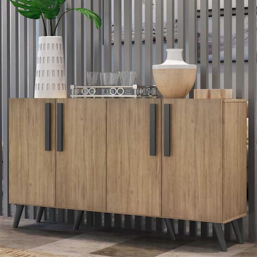 Conteúdo da Embalagem: 1 (um) aparador 1 (um) kit com 4 puxadores 1 (um) kit com 6 pés retrô