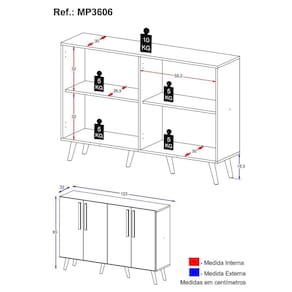 Dimensões do produto montado: Altura: 85cm | Largura: 123cm | Profundidade: 32cm *Você pode consultar as medidas internas na imagem técnica do produto.