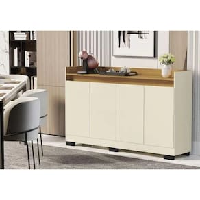 Aparador Buffet 4 Portas Real Móveis Primus O Buffet Para Sala Moderna 4 Portas e Pés Real é um móvel versátil, com espaço interno projetado para acomodar louças como pratos de jantar, copos e xícaras. Na parte superior, o tampo pode ser utilizado para acomodar a máquina Dolce Gusto ou Nespresso, além de objetos decorativos. Com seu design moderno e acabamento em madeira, o Buffet Modelo Real é a escolha perfeita para quem busca um móvel elegante e funcional para sua sala de estar. Os pés proporcionam estabilidade e segurança ao móvel, tornando-o ideal para uso diário. Atenção: A coloração das imagens do produto pode ter diferentes tonalidades dependendo do seu monitor. Ao receber o produto verifique as seguintes informações: Confira a quantidade de caixas e volumes; Consulte se o nome do comprador consta em todas as etiquetas; Verifique se as caixas não apresentam sinais de violação; Sempre confira seu produto no ato da entrega. NÃO nos responsabilizamos pela montagem do produto. Caso resida em apartamento, verificar se todos os volumes possuem tamanhos adequados ao elevador, Caso contrário é necessário solicitar ajuda para entrega de seu produto até seu apartamento. As imagens são ilustrativas e o produto mencionado nessa compra é o produto do título.