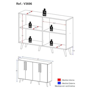 Dimensões do produto montado: Altura: 85cm | Largura: 123cm | Profundidade: 32cm *Você pode consultar as medidas internas na imagem técnica do produto.