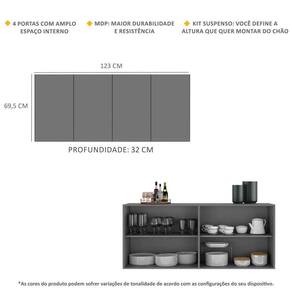Dimensões do produto montado: Altura: 69,5cm | Largura: 123cm | Profundidade: 32cm *Você pode consultar as medidas internas na imagem técnica do produto.