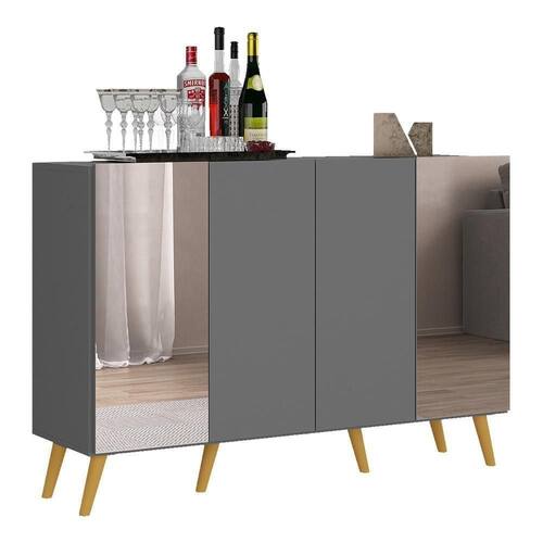 O Aparador Buffet 4 Portas com Espelho Retrô Vegas Multimóveis é produzido em MDP, que garante maior durabilidade, facilidade na limpeza, além de um acabamento superior. Com 4 portas, possui acabamento acetinado (cerca de 20% de brilho) e um excelente espaço interno para organizar seus pertences (as prateleiras internas suportam 5 Kg cada e o tampo 10 Kg). Os pés retrô, em polipropileno, e os detalhes com espelhos nas portas dão um charme especial ao móvel deixando-o com um visual leve e permitindo você compor um ambiente com ar vintage e moderno ao mesmo tempo. Os espelhos são de vidro (o que evita que a imagem fique distorcida) e lapidados, ou seja, passam por um processo para que as bordas não fiquem cortantes, o que garante maior segurança. Seu design minimalista, torna o móvel muito versátil, podendo ser utilizado de diversas maneiras e em qualquer ambiente.