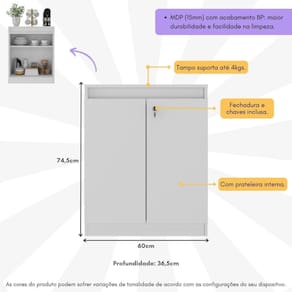 Altura: 60cm | Largura: 74,5cm | Profundidade: 36,5cm