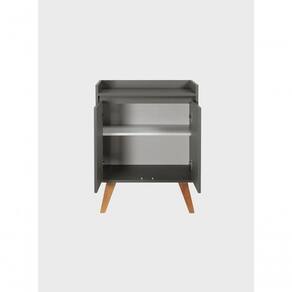 Conta com uma prateleira interna que amplia o espaço de armazenamento, mantendo livros, taças ou objetos decorativos sempre organizados e à mão.