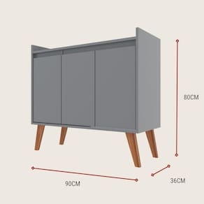 As dimensões de 90cm de largura, 80cm de altura e 36cm de profundidade torna o aparador um item perfeito para harmonizar o cômodo da sua casa, otimizando espaço e agregando beleza na decoração. Além do design moderno, esse móvel conta com uma prateleira interna para oferecer um maior aproveitamento de espaço.