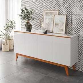 O buffet da Tebarrot é feito em MDF/MDP/Pinus é a peça que faltava para complementar sua sala de jantar. Seu design clean com cava no lugar de puxadores e pés em madeira garante o requinte e delicadeza que você busca para agregar o seu ambiente. Seu amplo espaço interno com divisórias auxiliam na organização e praticidade do dia-a-dia. Possui 4 portas com dobradiças metálicas e acabamento semi brilho. Suporta até 20 quilos distribuídos uniformemente.