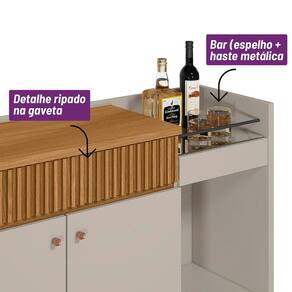 Aparador Buffet Bar com Espelho 2 Portas com Gaveta Ripado e Nicho Lucas