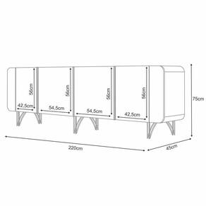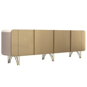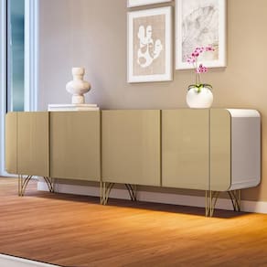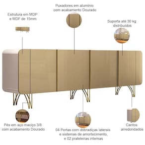O Buffet é um móvel essencial para sala de jantar! A peça é a principal chave que combina elegância e funcionalidade. Com 04 portas oferecendo amplo espaço para guardar louças, talheres e outros objetos. O design arredondado confere um toque de sofisticação e modernidade ao ambiente, enquanto os pés em aço com acabamento dourado adicionam um brilho e requinte especial. O Buffet Santiago para quem busca um móvel de qualidade extrema, acompanhado de muita beleza, e pensado para praticidade dos seus dias! Adquira agora o seu!