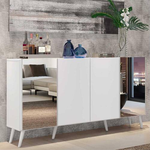 Aparador Buffet c/ Espelho e Pés Retrô Vegas Multimóveis Branco