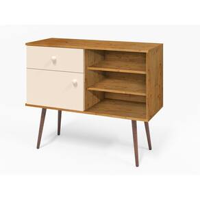 Elaborado em mdp de 15 mm, possui 3 gavetas com corrediças e amplo espaço interno, com pés de 65 cm em madeira maciça estilo retrô, esses atributos garantem ao produto maior resistência e durabilidade.