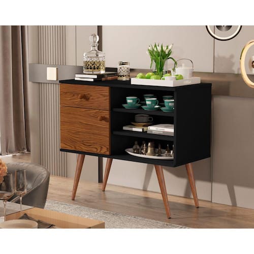 Aparador Buffet Cantinho do Café Ferrari Preto com Nature - Rede Móveis