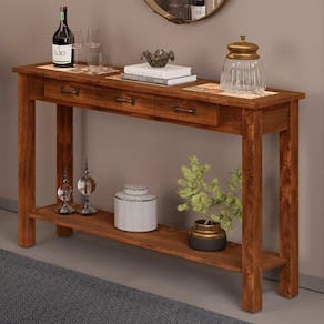 Ter um móvel com um toque rústico em casa faz toda a diferença, por isso o Aparador Buffet Com Cerâmica 01 Gaveta 145cm W02 New Rústico Madeira Maciça Imbuia - Lyam Decor traz todos os detalhes muito característicos deste estilo para tornar qualquer espaço único. Ideal para compor área de lazer, espaço gourmet ou até mesmo para evidenciar ainda mais o natural na sua decoração dentro de casa. Possui uma gaveta que o torna ainda mais funcional para uso diário e armazenamento de objetos, além de trazer um ar incrivelmente convidativo e charmoso. Pra finalizar, possui um detalhe de cerâmica vintage que valoriza a peça e dá todo o charme a sua base superior, Garanta já o seu! Dimensões (A x L x P) 85,5 x 145 x 33 cm Características: Estrutura em madeira maciça de Pinus, cor Imbuia. Ferragem externa em metal na cor Preto. Tampo com cerâmica vintage. Possui 01 gavetas com 03 puxadores em metal. Possui 01 prateleira. Pés de madeira 6x6. Acabamento rústico em cera. - Suporta até 25 kg em sua base superior, e 15 kg na prateleira inferior. - Manter ao abrigo de local interno, sem ficar exposto diretamente ao sol, calor e umidade excessiva. Dica de conservação: Não deixe acumular sujeira em seu móvel. Esta sujeira se acumula nos poros, fazendo sua cor escurecer, realize a limpeza deste produto apenas com pano seco. Não cortar alimentos sobre a cerâmica, a prática pode riscar o espaço decorativo. Observações importantes: - Produto para uso residencial em ambiente interno, não devendo ficar exposto diretamente ao sol, calor e umidade excessivos. - Pode haver alguma diferença de tonalidade entre a imagem e o produto real, por conta do tratamento de imagens e a calibração de cores do seu monitor. - As imagens são meramente ilustrativas, não acompanham objetos de decoração e eletrônicos. - Ao receber a mercadoria, o cliente deve verificar as condições da embalagem, - Montagem, dese outras instalações serão de responsabilidade do cliente. Não nos responsabilizamos, no ato da , por subir escadas/elevadores ou pelo transporte por guincho em apartamentos. Eventuais despesas são de responsabilidade do comprador. - Confira as dimensões do produto e certifique-se de que passará normalmente por supostos elevadores, portas, escadas e/ou corredores de sua residência. NA