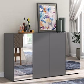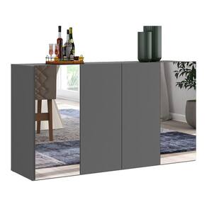 O Aparador Buffet com Espelho Vegas Multimóveis é produzido em MDP, que garante maior durabilidade, facilidade na limpeza, além de um acabamento superior. Com 4 portas, possui acabamento acetinado (cerca de 20% de brilho) e um excelente espaço interno para organizar seus pertences (as prateleiras internas suportam 5 Kg cada e o tampo 10 Kg). Os detalhes com espelhos nas portas deixam o móvel mais requintado, criando um ambiente moderno e charmoso. Os espelhos são de vidro (o que evita que a imagem fique distorcida) e lapidados, ou seja, passam por um processo para que as bordas não fiquem cortantes, o que garante maior segurança. Seu design minimalista, torna o móvel muito versátil, podendo ser utilizado de diversas maneiras e em qualquer ambiente.