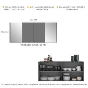 Dimensões do produto montado: Altura: 69,5cm | Largura: 123cm | Profundidade: 32cm *Você pode consultar as medidas internas na imagem técnica do produto.